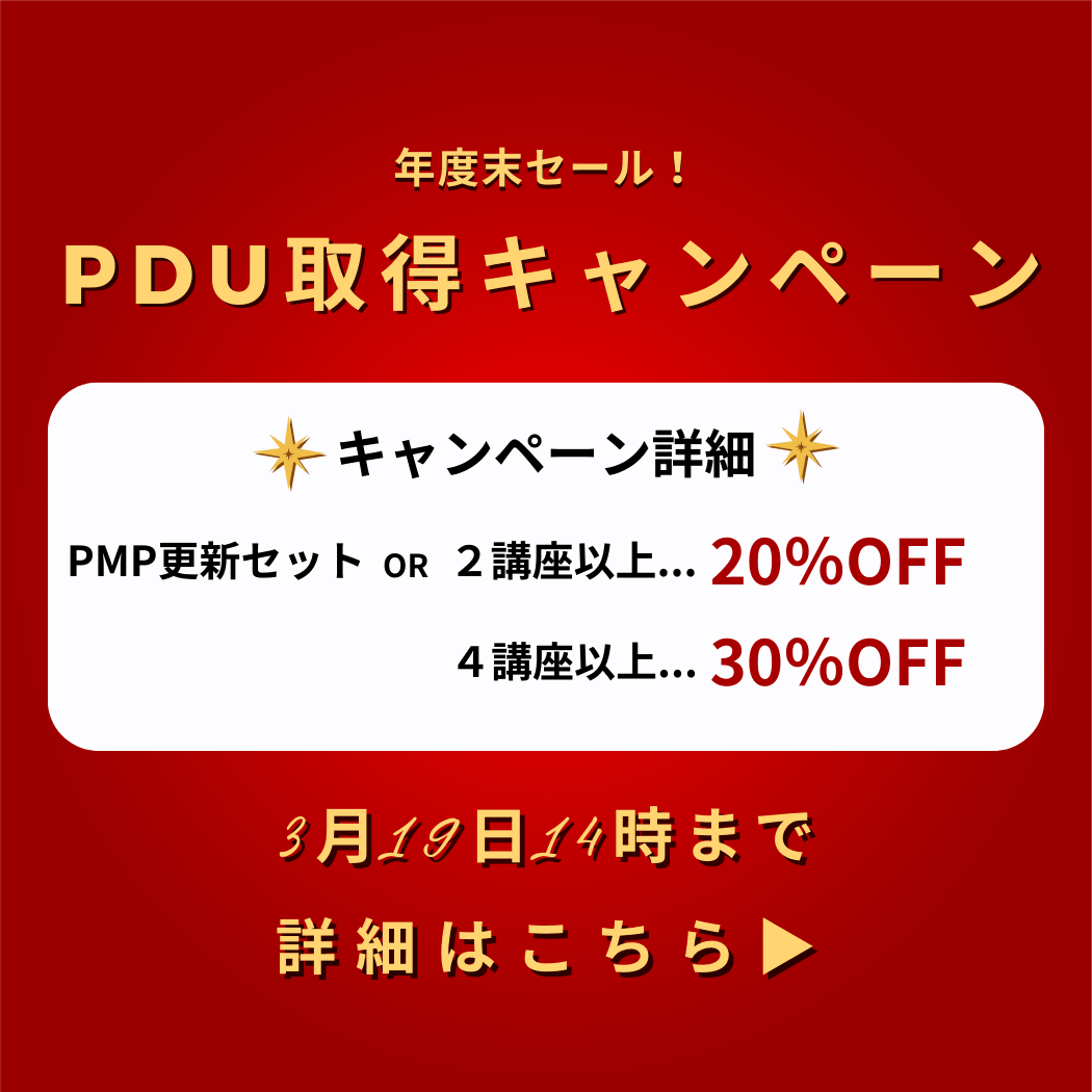 PMP(R)更新用のPDUも取得できる講座で、体系的にプロジェクトマネジメントについて学習することができます。