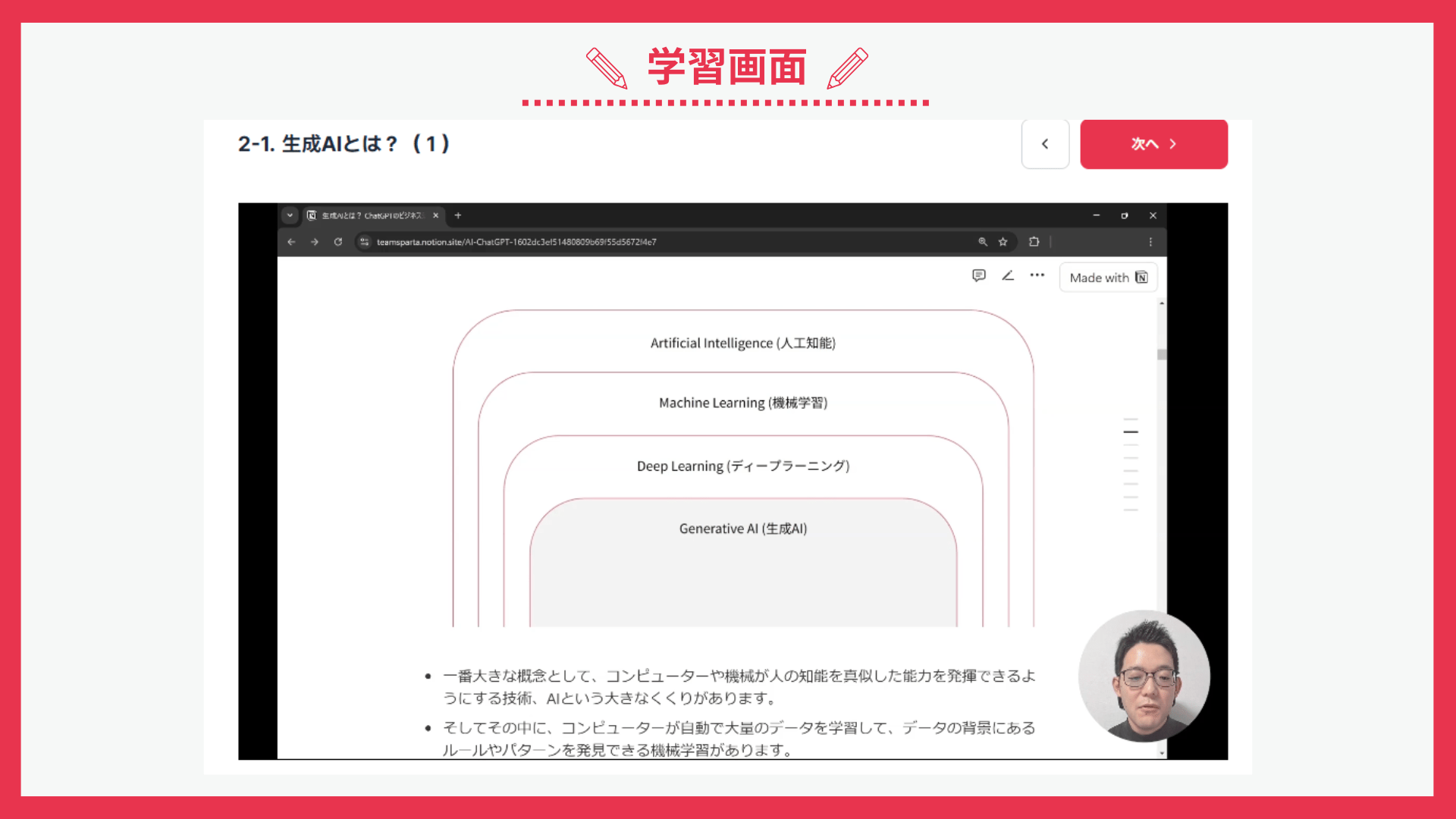 - 生成AI、ChatGPTの基礎知識を理解してプロンプトを作成できる。