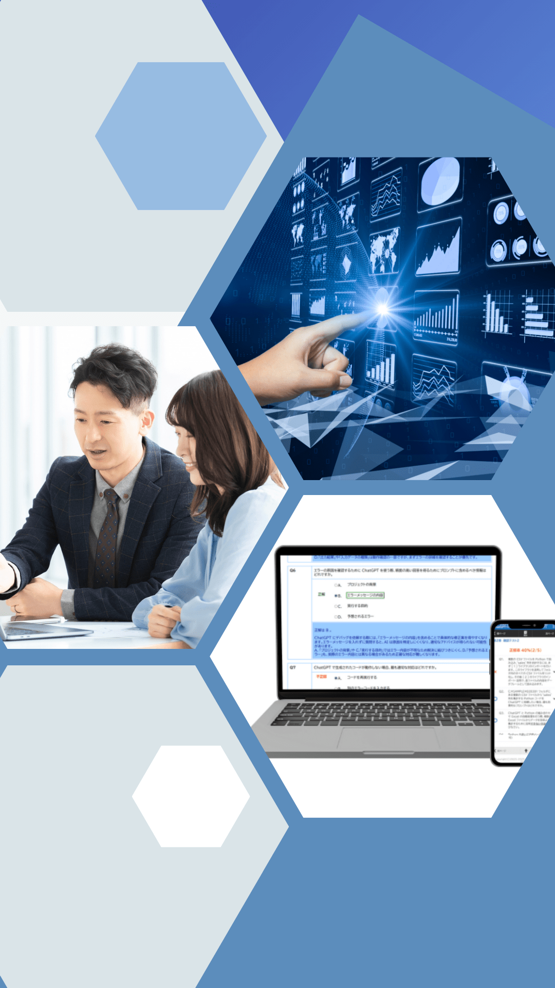 業務の現場を想定した、実践的な課題を多数用意しています。プロンプトの設計やチャットボット作成などを通じて実務で役立つ課題に取り組むことで、学んだ内容をそのまま業務に応用できる力が自然に身につきます。