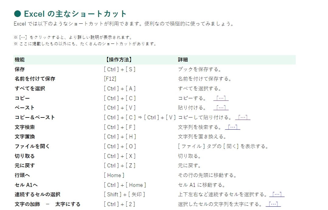 Excelを効率よく使いこなすには、ショートカットを覚えることが重要です。本講座では、ショートカット一覧をまとめた、ショートカットシートを収録したいています。