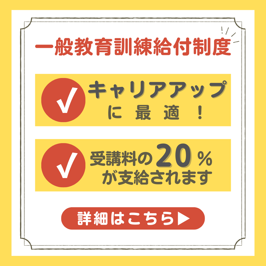 ・一般教育訓練給付制度対象の講座もご用意しております。ぜひご活用ください!※講座内容は同様です。